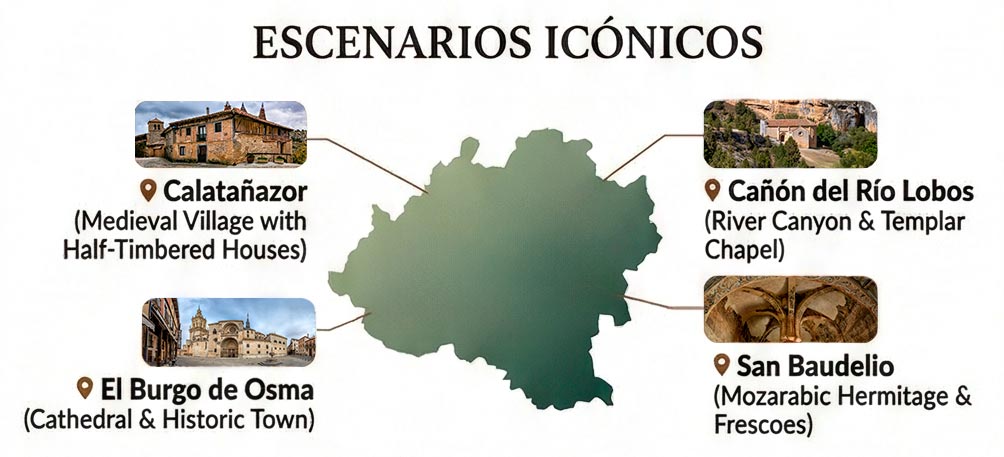 Proyectos sobre arte y naturaleza, reels, fotografías y rutas culturales; conectada a la web www.soriaespacionatural.com.